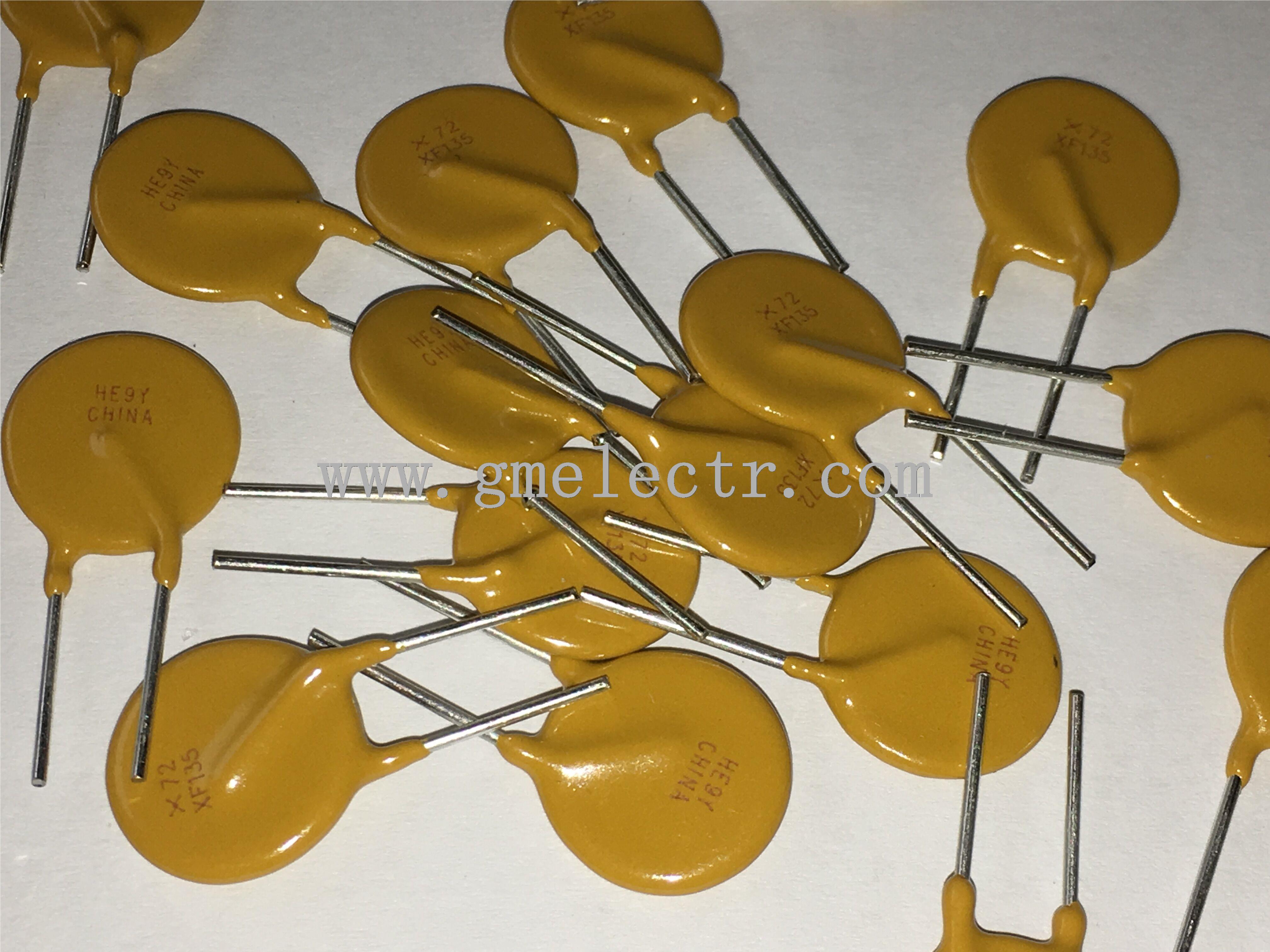 PTC Resettable Fuse 1.35A(hold) 2.7A(trip) 72V 40A 1.7(Nom)W 9.6s 0.12Ohm Radial 14.5 X 3mm